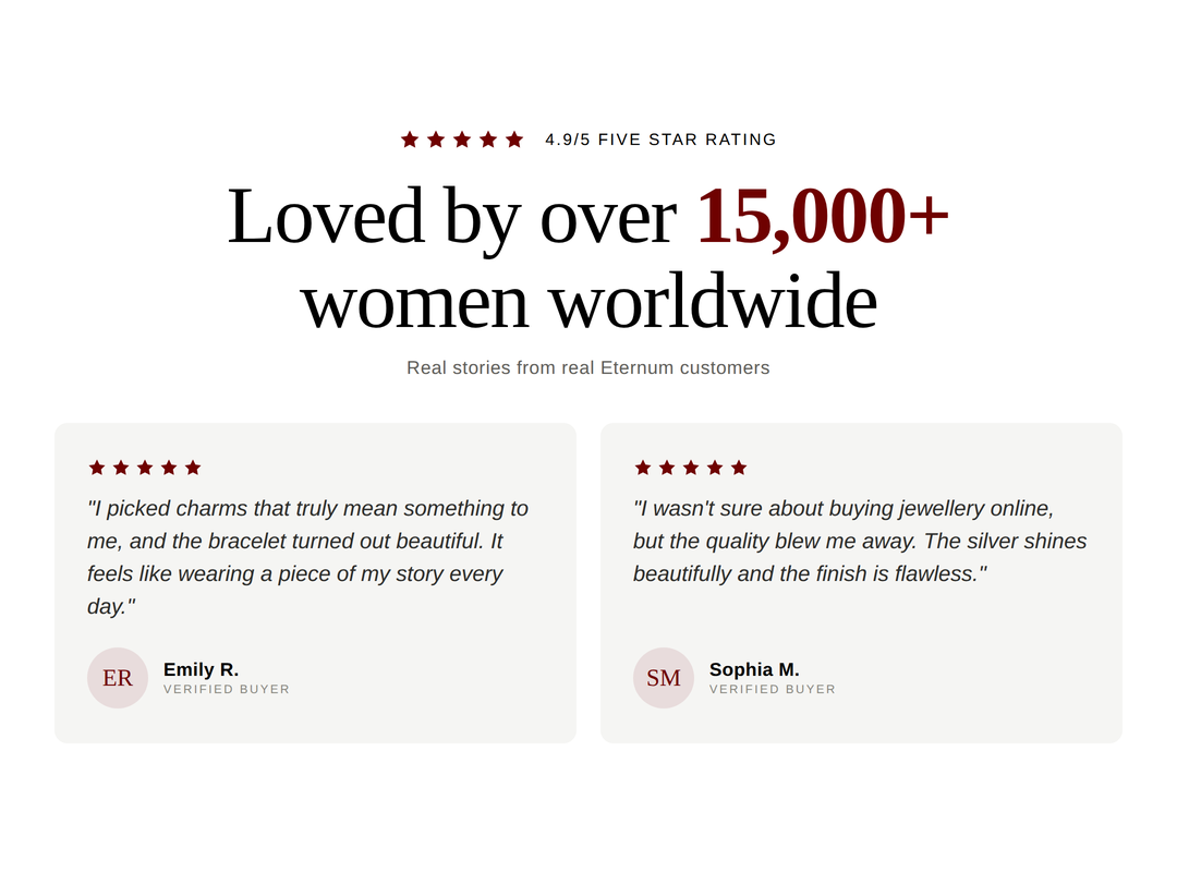 Eternum entstand aus dem Wunsch, Geschichten in Schmuckstücke zu verwandeln, die jeden Lebensabschnitt begleiten. Die Marke, gegründet von einer jungen Unternehmerin, vereint 925er Sterlingsilber, originelles Design und Bedeutung – allesamt entworfen für Frauen, die ein Leben voller Sinn und Stil führen.