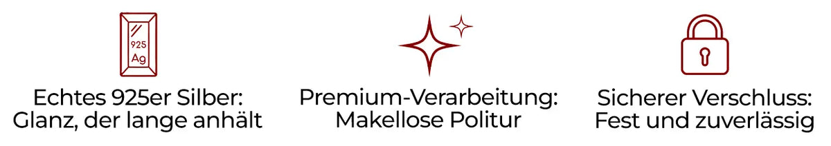 Gefertigt aus 925er Sterlingsilber. 925er Silber besteht aus hochreinem Silber und bietet im Vergleich zu anderen Silberlegierungen eine höhere Haltbarkeit, einen intensiveren Glanz und eine bessere Widerstandsfähigkeit.